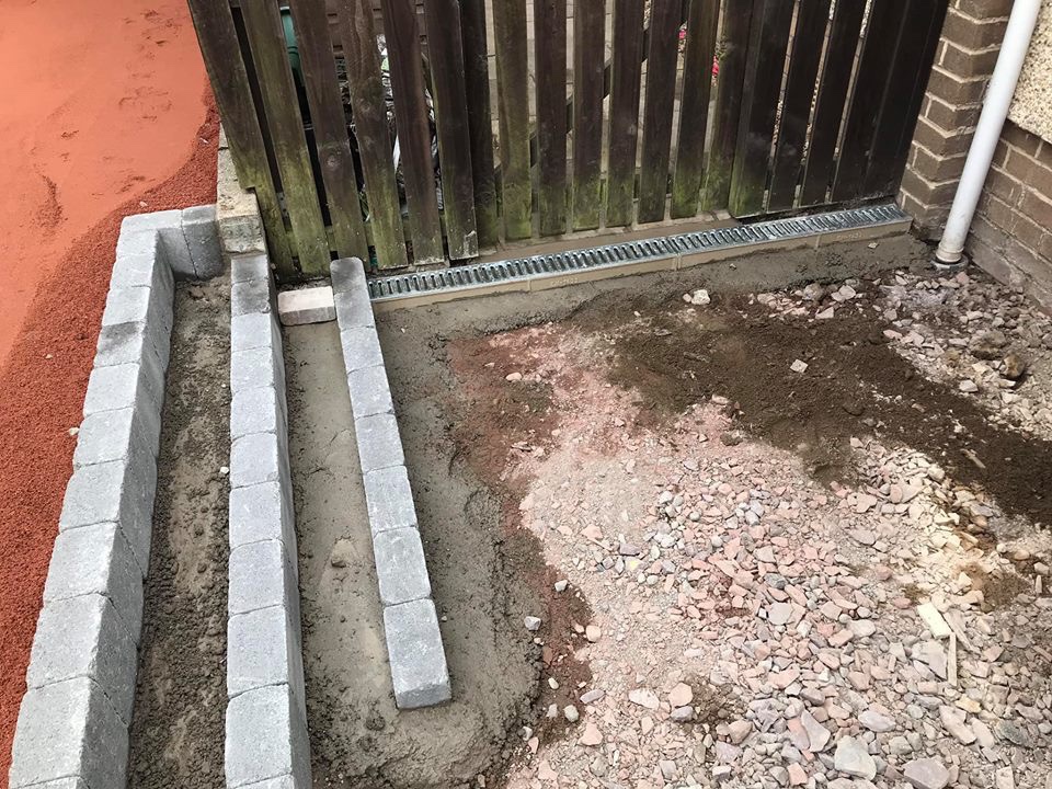 The kerbing was put in place and we started getting the ground ready for monoblocking 😉