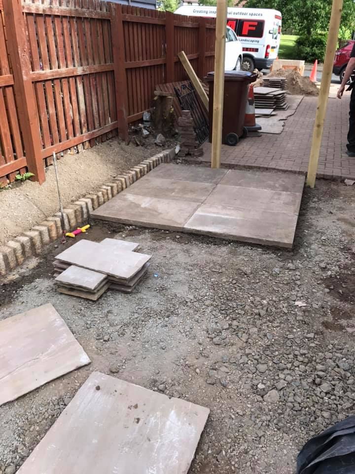 Todayβs progress βοΈβοΈ the cobbles are laid, the step is nearly completed, shed base installed and slabs have been started so I think you could say it was a successful day πππ