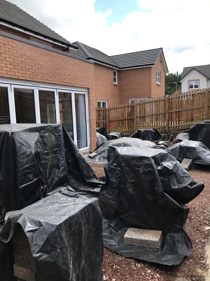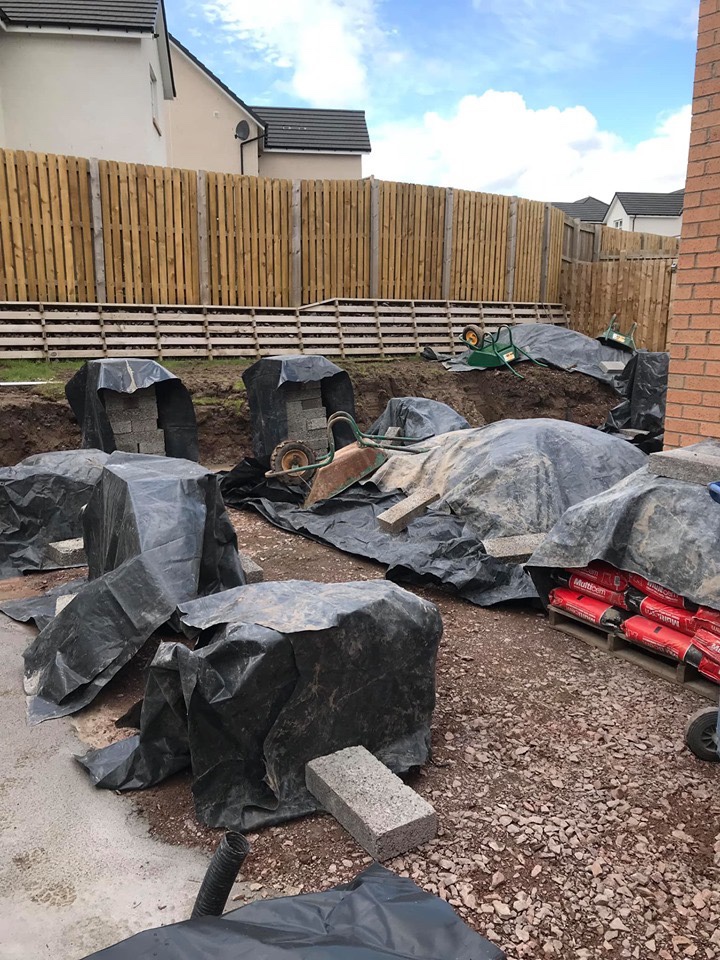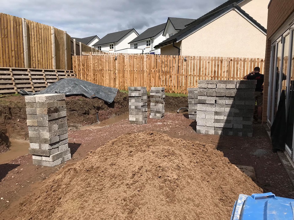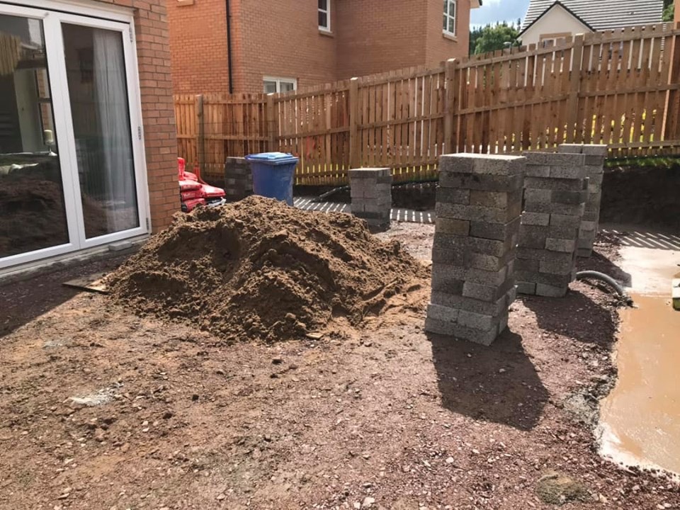 Our photographs from the Ferniegair job yesterday. We brought in all of the blocks for the wall, the sand and the cement 😉