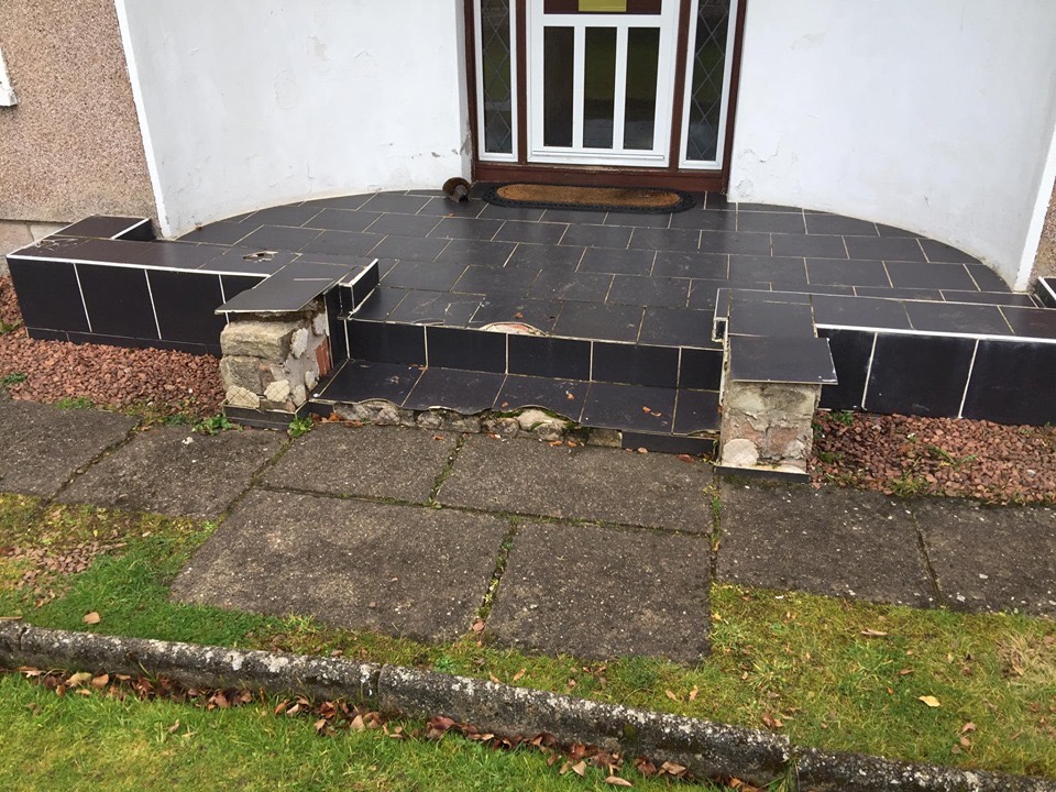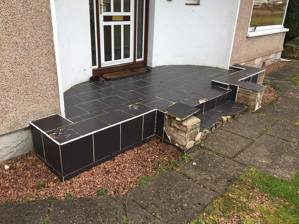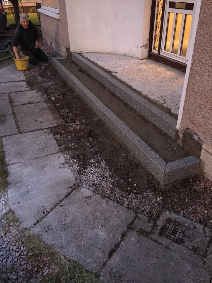😊😊 a new day, a new job and how it progressed 😊😊 we are replacing these worn out steps with granite risers and porcelain slabs 😊😊