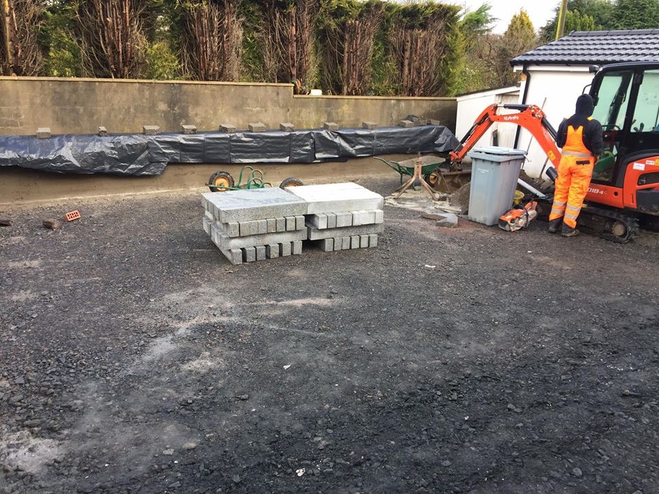 😔😔 progress was very slow today 😔😔 the rain kept getting the better of us ☔️☔️ we got the coping stones on the wall but had to keep them covered ☔️☔️