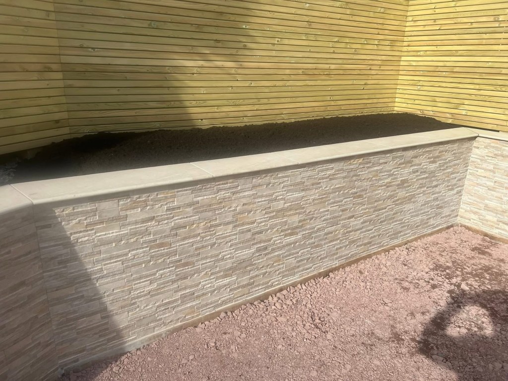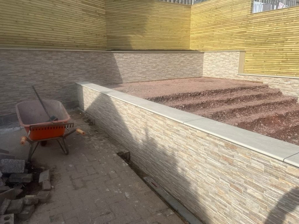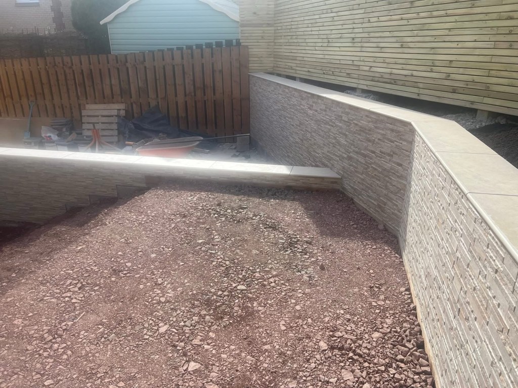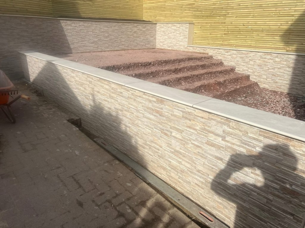 😊😊 some progress photos from today 😊😊 wall all finished, ground shaped for the next part of the job and topsoil in flower bed 😊😊